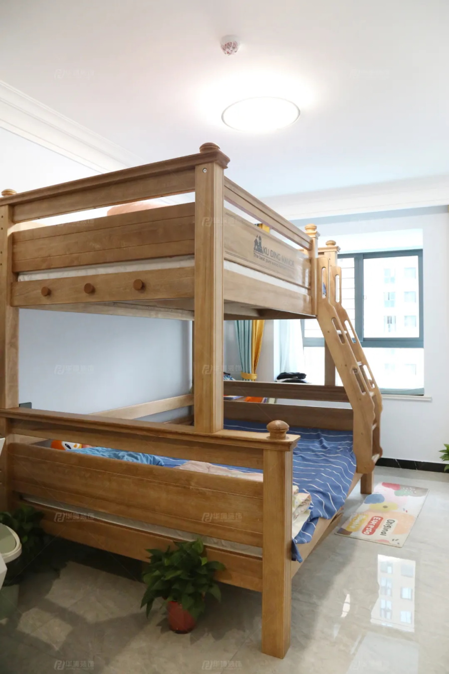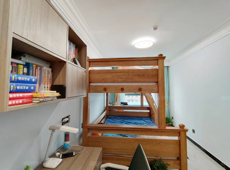 因為業主有一對12歲的雙胞胎男孩,所以兒童房做了上下鋪,衣柜后方是書桌,方便小朋友學習。