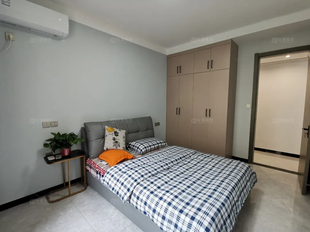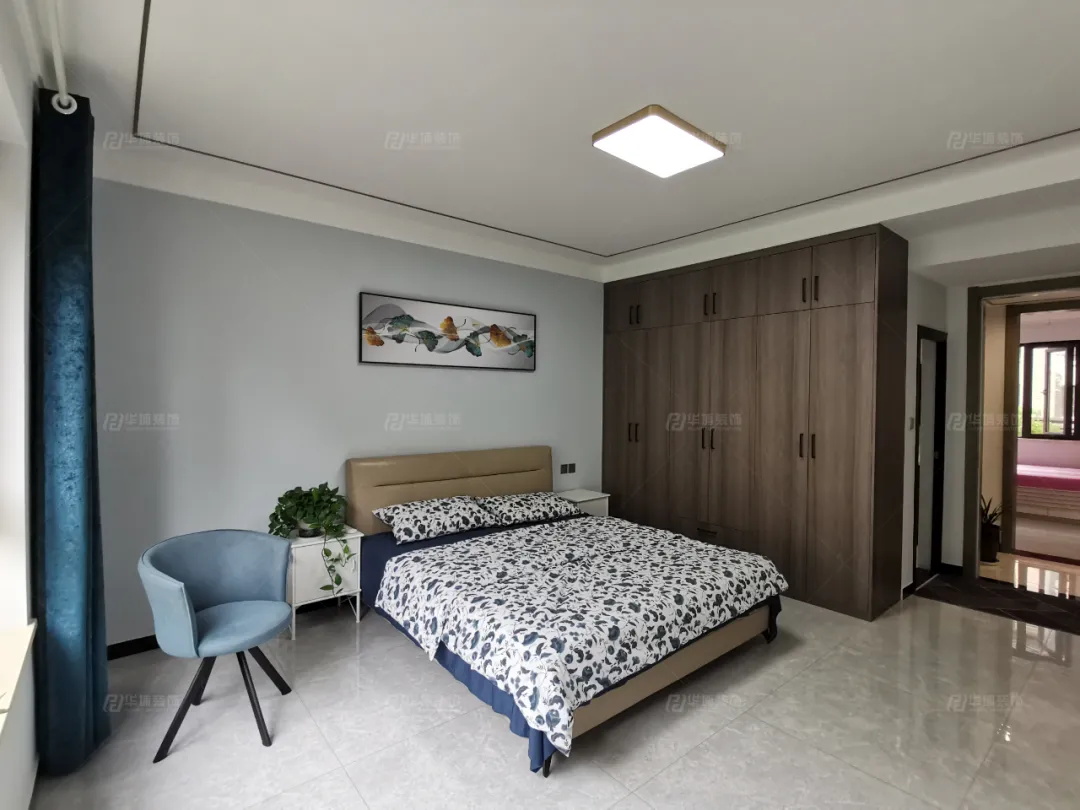 主臥有著超大空間,配色大方,陳設(shè)清減,平實而精致,給人很輕松的視覺享受。