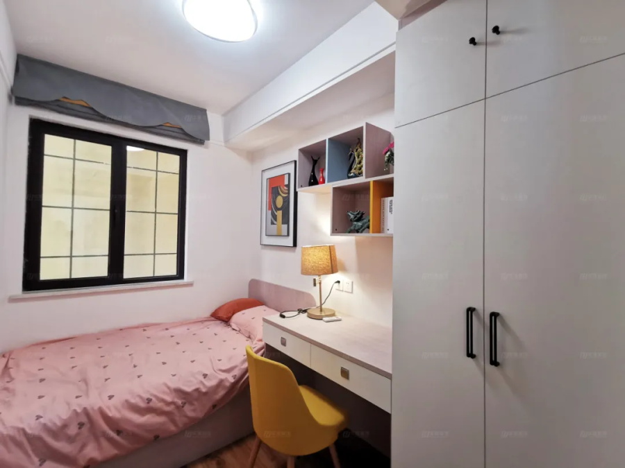上下鋪+衣柜+拐角書桌,每一個尺寸都卡的嚴絲合縫,把兒童房空間做到了最大化利用。