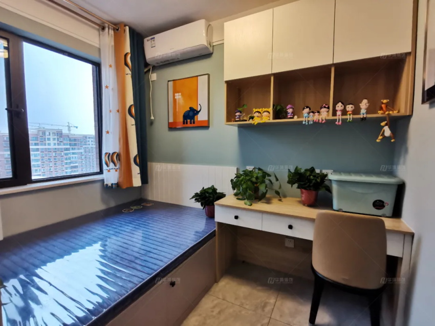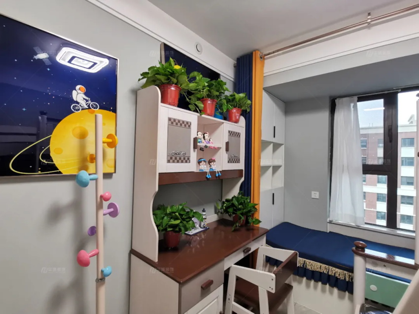 最小的兒童房做了榻榻米,1.5米的單人床,一張書桌,一個(gè)衣柜,待小寶入學(xué),這將是伴他成長(zhǎng)的地方。
