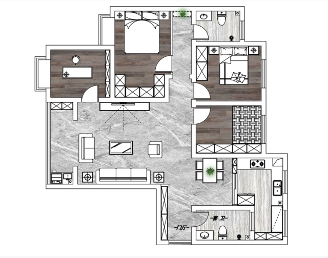 這套方案的分析,代表的是兩個軍屬家庭,親如姐妹,就連家里的裝修也都是一模一樣。根據阿姨們的需求,設計師也是對原始戶型做了一定的改動:
