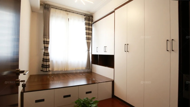 因為是做退休生活居住的,所以臥室整體的格調比較簡單。這是一個榻榻米房間,重點依然是儲物,偶做客房,來承載繁繁復復的生活。