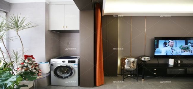 入戶做了一組三段式玄關(guān)柜,嵌入感應(yīng)燈帶,有人在就會一直有光亮。還有一個咖色的穿衣鏡,不僅可以整理妝容,還能在視覺上延伸空間。再進(jìn)來是小格柵包角設(shè)計的掛衣區(qū),很別致。