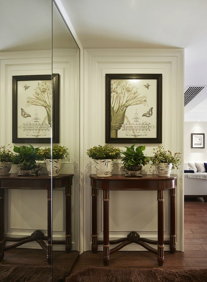 古色金屬支臺,配黑白花紋地毯,更有一種復(fù)古感。