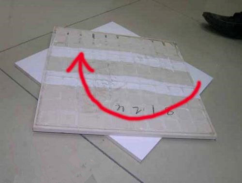 把兩塊同一品種的磚面對面重疊在一起,四角對齊,轉動其中的一片,轉動容易者質量差,反之則好。此法不能用于檢測仿古磚。仿古磚的顯著特點是表面色彩和花紋的任意變化,表面可以凹凸不平。