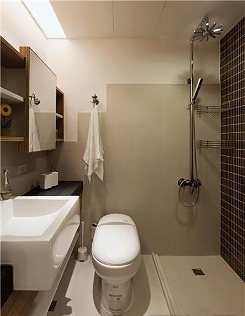 洗手間的淋浴外還是要做隔斷。不能圖省事拉一個浴簾了事,實際很不方便,水流滿地。