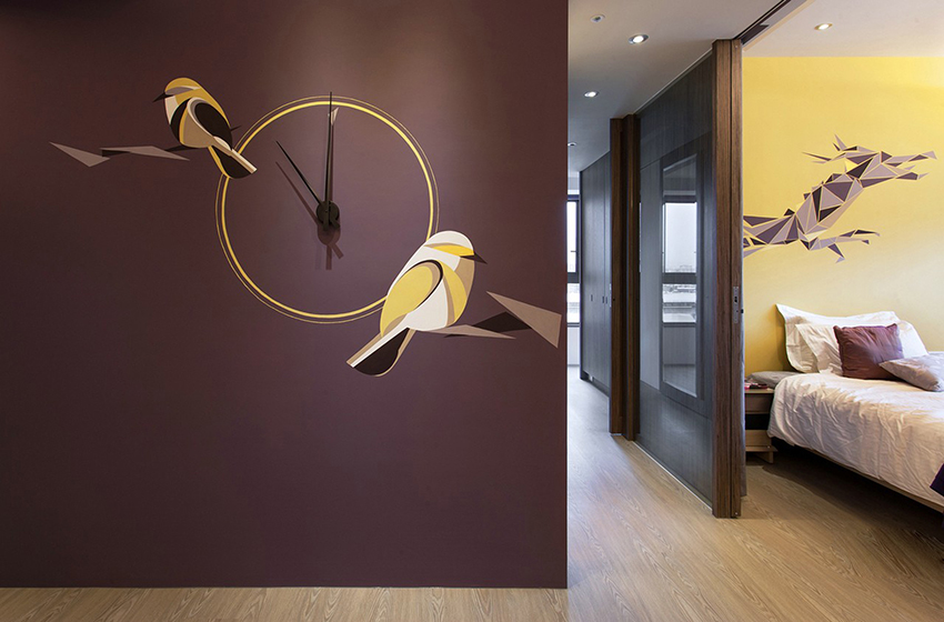 12、巧用壁畫裝飾:在墻上巧妙布置風(fēng)景優(yōu)美,畫面深遠(yuǎn)的壁畫,仿佛開啟了自然之窗,令人視覺開闊,房間會(huì)顯得大了許多。