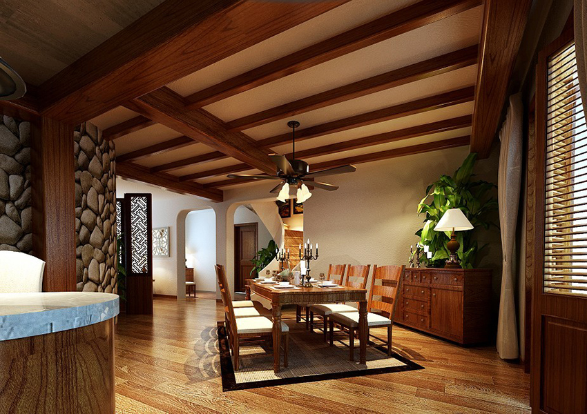 東南亞的家居風(fēng)格非常崇尚自然。比如在材質(zhì)方面,東南亞風(fēng)格會大量運用麻、藤、竹、草、原木等天 然的材料,從而營造一種充滿鄉(xiāng)土氣息的生活空間。