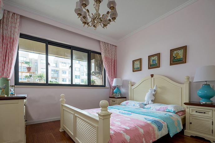 空間的整個六面體都是五彩且清淡的色彩呈現,且以暖色調充斥,盡顯溫馨與迷人的幸福。