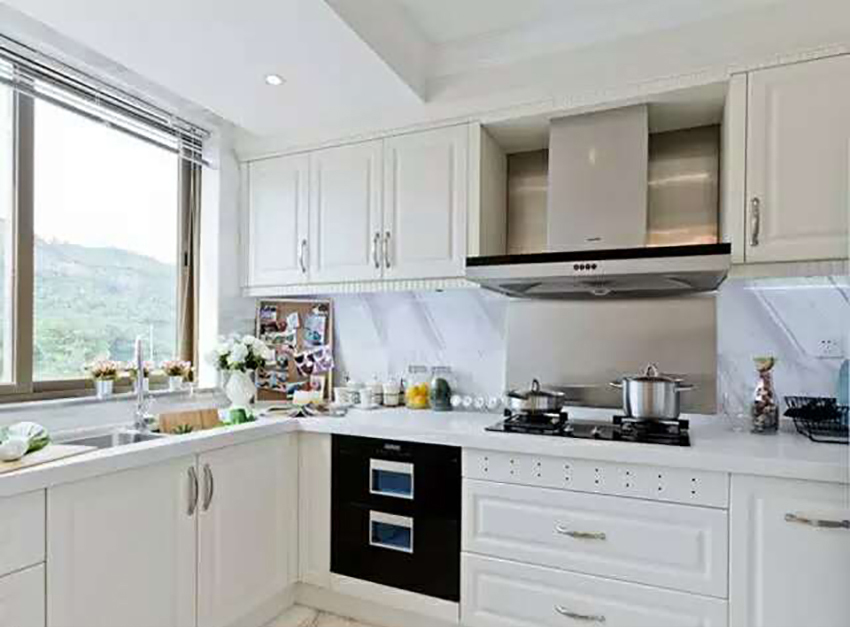 家庭的能量來自于食物,食物又來自于廚房,因此廚房與家庭的運勢關系極大,而廚房本身有“火宅”之稱,因此廚房的裝潢不必選用其他色彩,只需要原始的黑白二色即可,白色最佳。