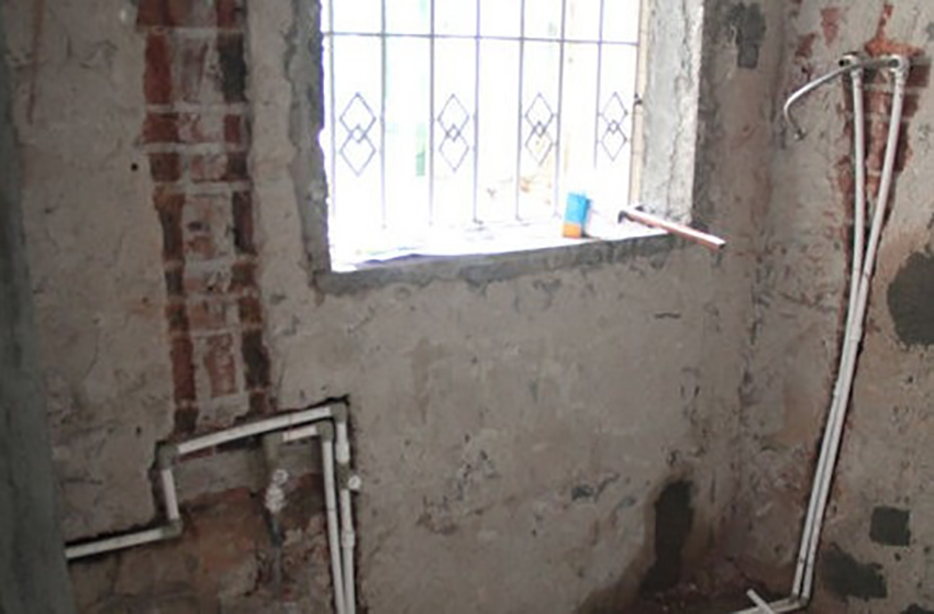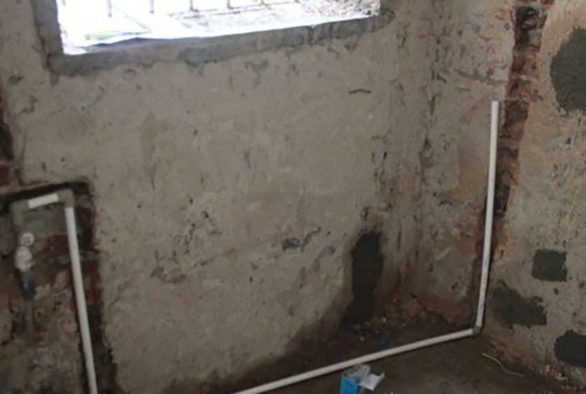 3、 通陽臺(tái)的水管,必須埋在原毛坯房的地面或墻面鑿深4cm的槽內(nèi),然后用水泥砂漿將槽口封平。