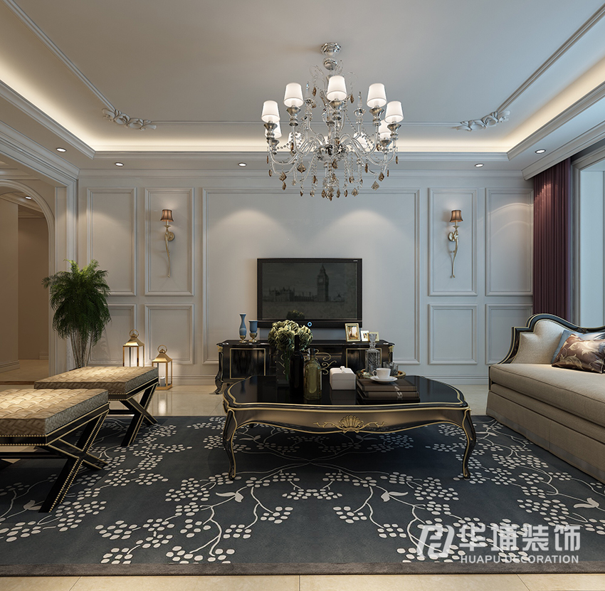 通過歐式造型、石膏線、家具、配飾達(dá)到最終效果。