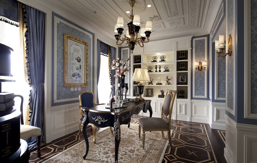 書房中最常見的地面材料是地板和地毯,地板的木質(zhì)材料為簡單的書房增添許多的書卷氣息和自然氣息,而地毯以其柔軟的質(zhì)地,不僅帶來舒適的腳感,同時也起到靜音的作用,為讀書人提供一個安靜的環(huán)境。