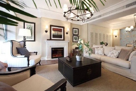客廳,精致美式田園風,簡約白色沙發,還有一個挺好看的壁爐