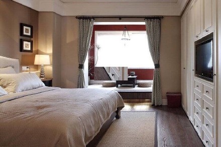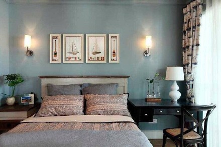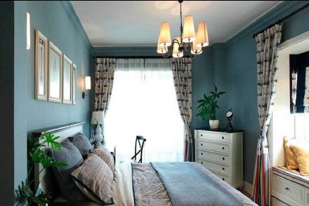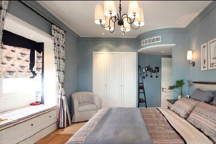 臥室,淡藍色色彩搭配,陽臺照射整個空間