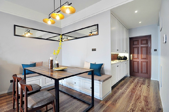 如戶玄關,收納裝飾,餐廳、餐桌搭配,更喜歡的是餐桌上方的吊燈裝飾。