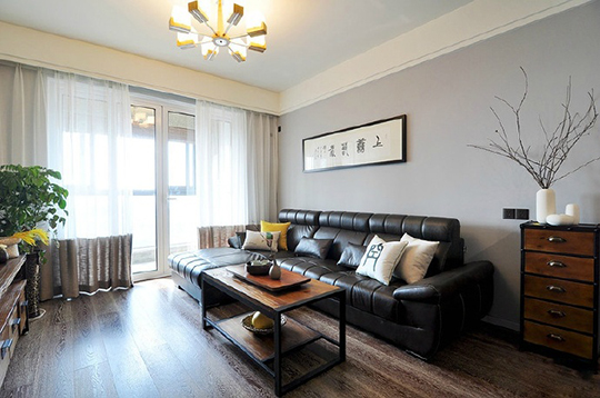 客廳,原木 實木地板,黑色皮質沙發,古字畫沙發背景墻,電視背景墻,更顯客廳氣質,主人品質。陽光從大陽臺透過玻璃窗照射整個客廳,暖人。