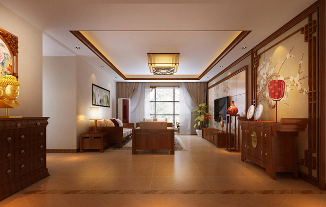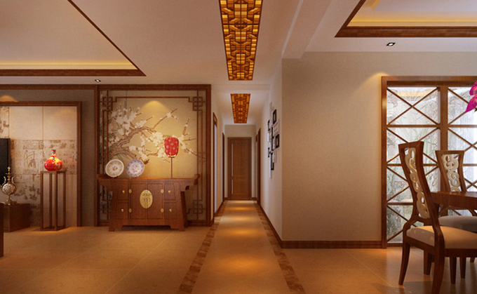 本案設計主要圍繞中式風格,稍有不同的是加入了一些古典的因素在里邊,造型設計上也是簡單大方,溫馨不失大氣,也傳承了中國的一些文化,是不錯的中式風格設計參考。
