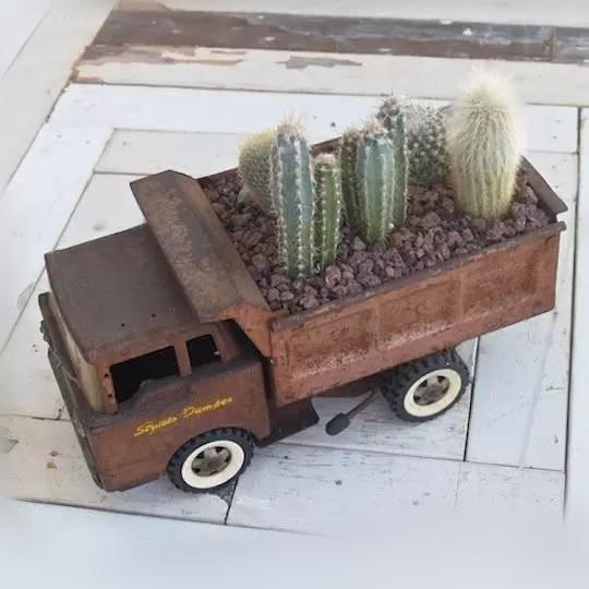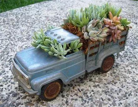 1、尤其是男孩子,最喜歡的就是玩具車對不對,如果舊了可以用來做花盆,放點土就行啦!橡膠玩具也可以鉆空,埋上土種上多肉!尤其適合栽種小型綠植!