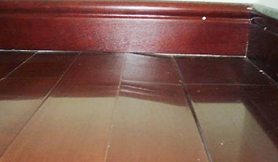 就是邊縫擠壓、翹起,這種主要是地板受潮了,實木一受潮就發漲,自然就會向兩邊擠壓,縫隙留得不夠就會起翹了。