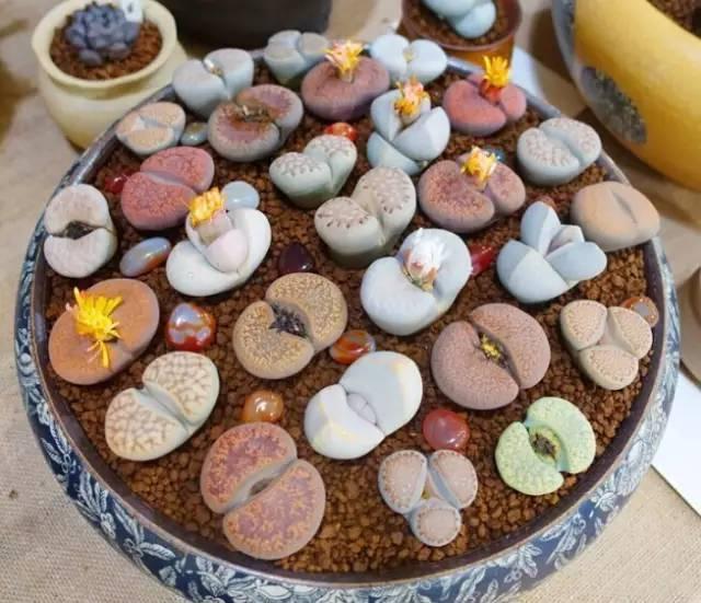 像一個個小石頭開出了花朵,十分嬌俏,土干了再澆水,一次澆透即可。
