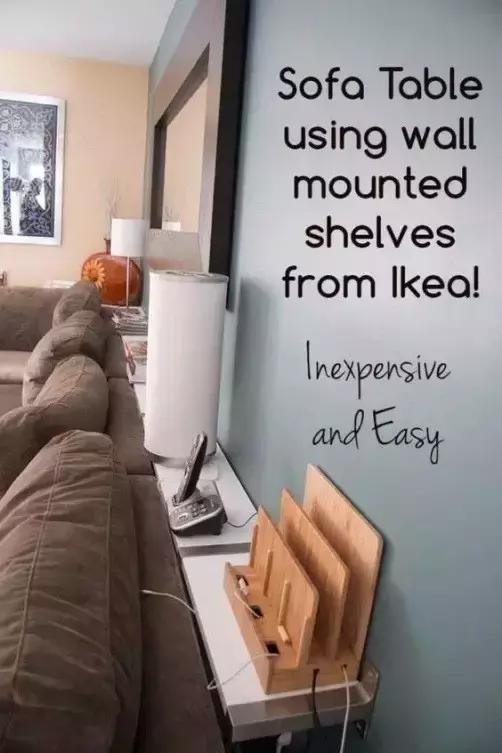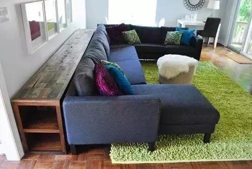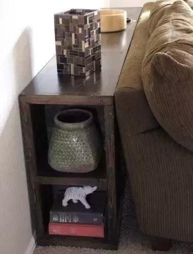 沙發(fā)大家都是靠墻放的,沒人想過利用沙發(fā)后面的空間吧?試試看往前挪個(gè)5cm,馬上就多了個(gè)置物架!放點(diǎn)花草、臺(tái)燈什么的還是綽綽有余的!還能裝飾呢。