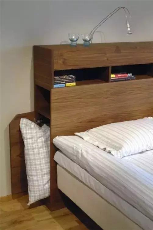 同樣的方法還可以用在床頭,下面這種抽拉柜還挺不錯(cuò)的。
