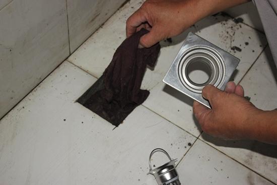 5、塞一塊抹布進下水道,避免砂石掉進去堵住。