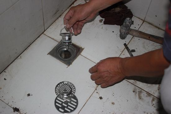 3、敲松地漏,取出來。為您推薦:裝修房子衛生間需要注意什么