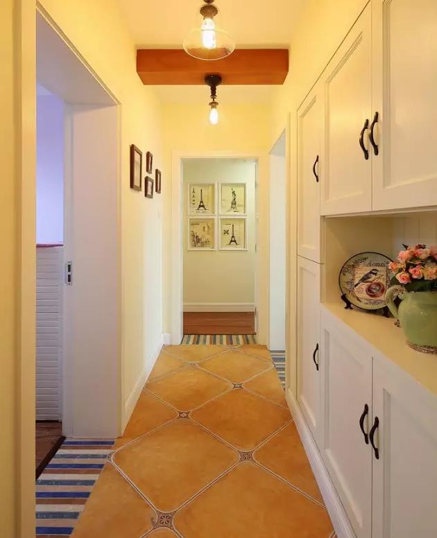 或者在走廊的盡頭也可以像下圖一樣做個(gè)小柜子,畢竟居家過(guò)日子柜子可是不能少,不然家里一定亂糟糟的。