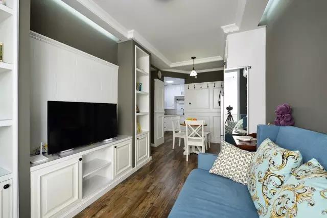 對小戶型來說,收納必須是無處不在,包括各種各樣的墻面。在客廳做個電視柜收納,可以放書、古董、裝飾物等等,美觀還顯大氣。