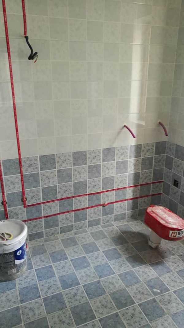 衛生間墻磚鋪設采用墻磚壓地磚工藝,一是避免墻面上的水留到防水層造成淤積;二是在有地熱情況下,地磚和墻磚后邊的水泥墻留有伸縮縫,可以確保熱脹冷縮過程中瓷磚不會受到擠壓。
