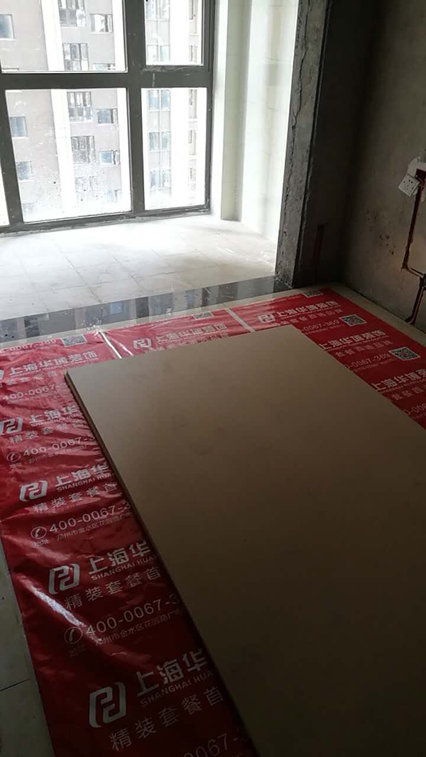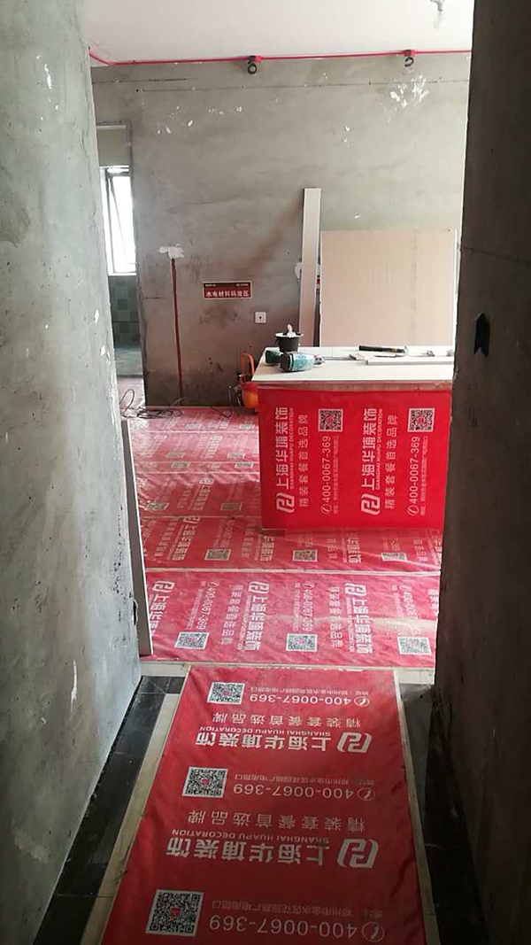 從入戶門開始,對地面成品使用專用保護膜進行成品保護,避免施工過程出現意外損壞。