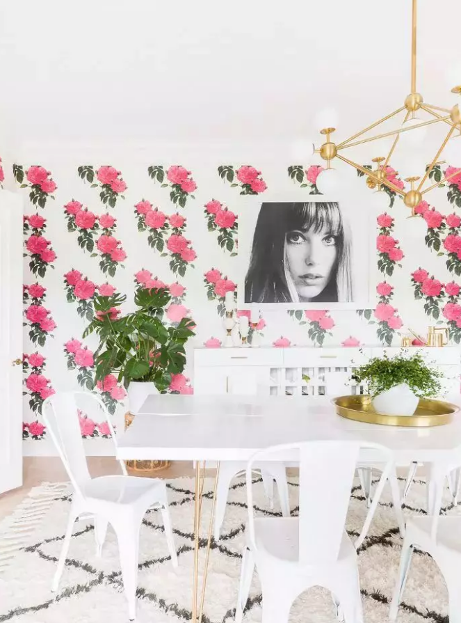 試著把條紋壁紙與花卉和綠色混合在一起,非主流更流行。這條長凳把用餐帶到了一個(gè)更高的層次,空間采用了高對(duì)比度的黑色、白色、綠色和橙色調(diào)色板。透明椅讓整個(gè)座位區(qū)感覺很輕,就像我們喜歡的春天裝飾的感覺一樣。