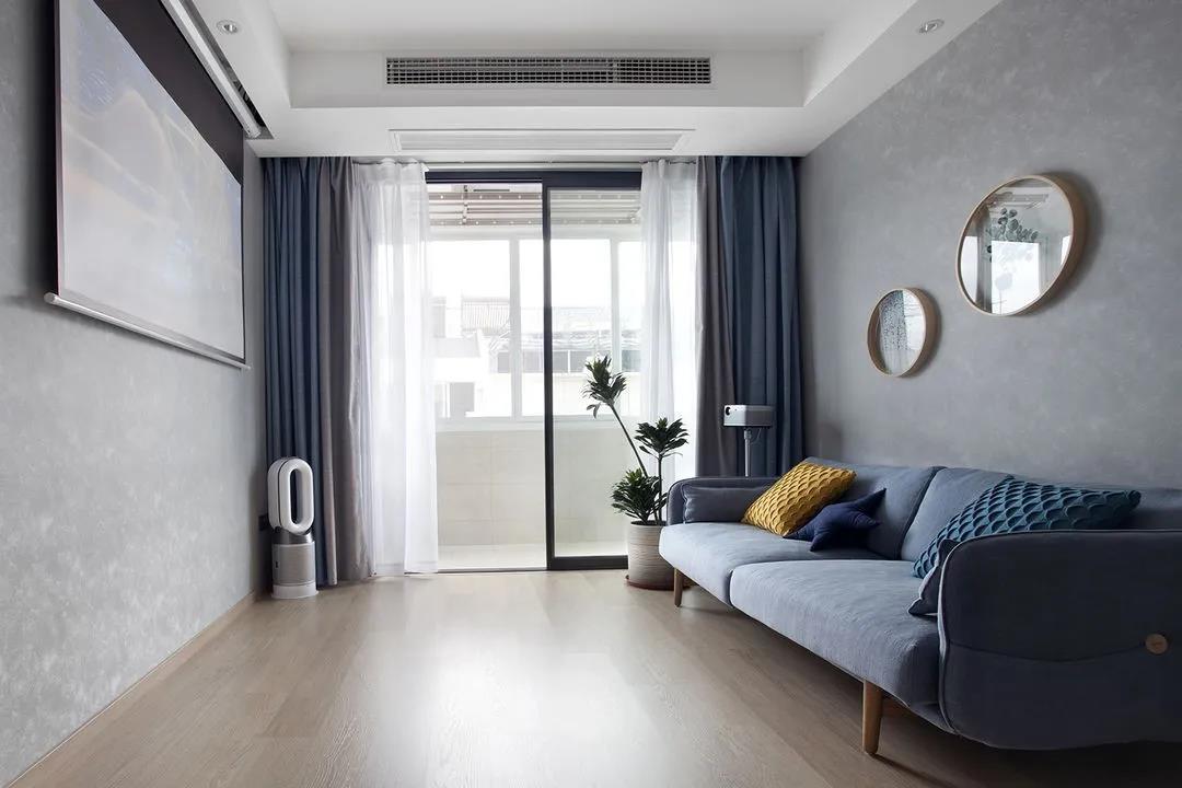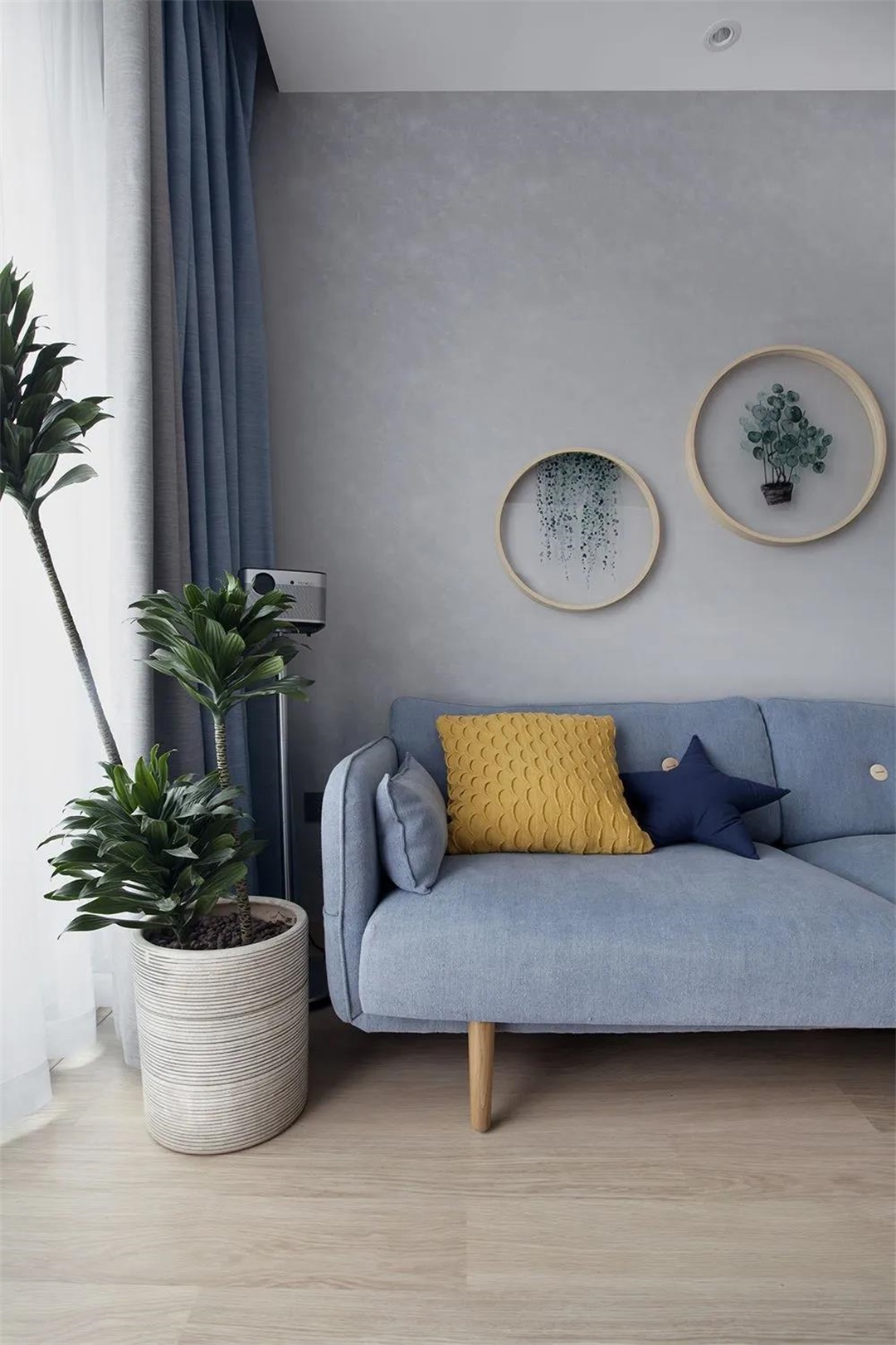 小朋友的世界是多彩的,所以沙發選用淺藍色,搭配黃色的抱枕,添置綠植,家里滿滿的活力。