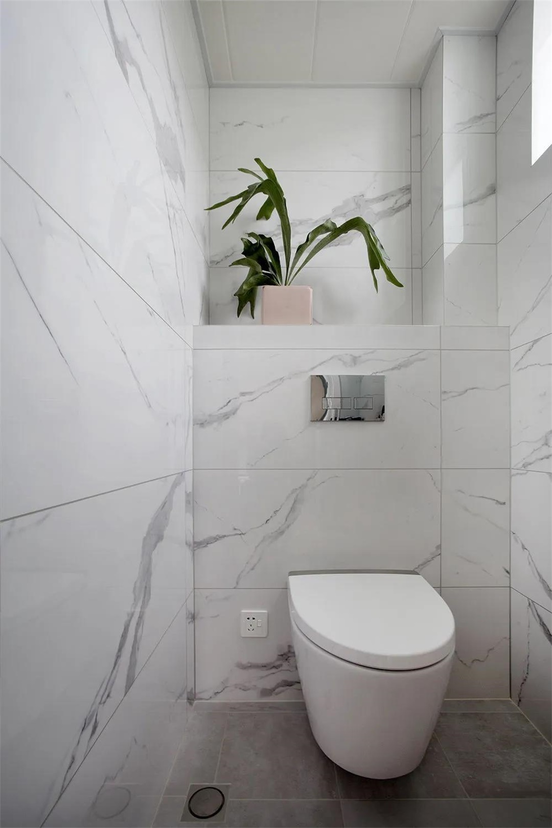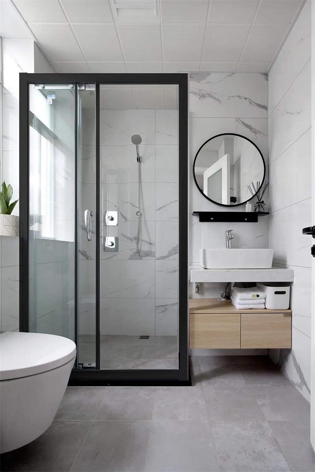 主衛采用干濕分離,方便使用。整體黑白色調,很有線條感。大理石紋理墻磚,顯大氣利落。