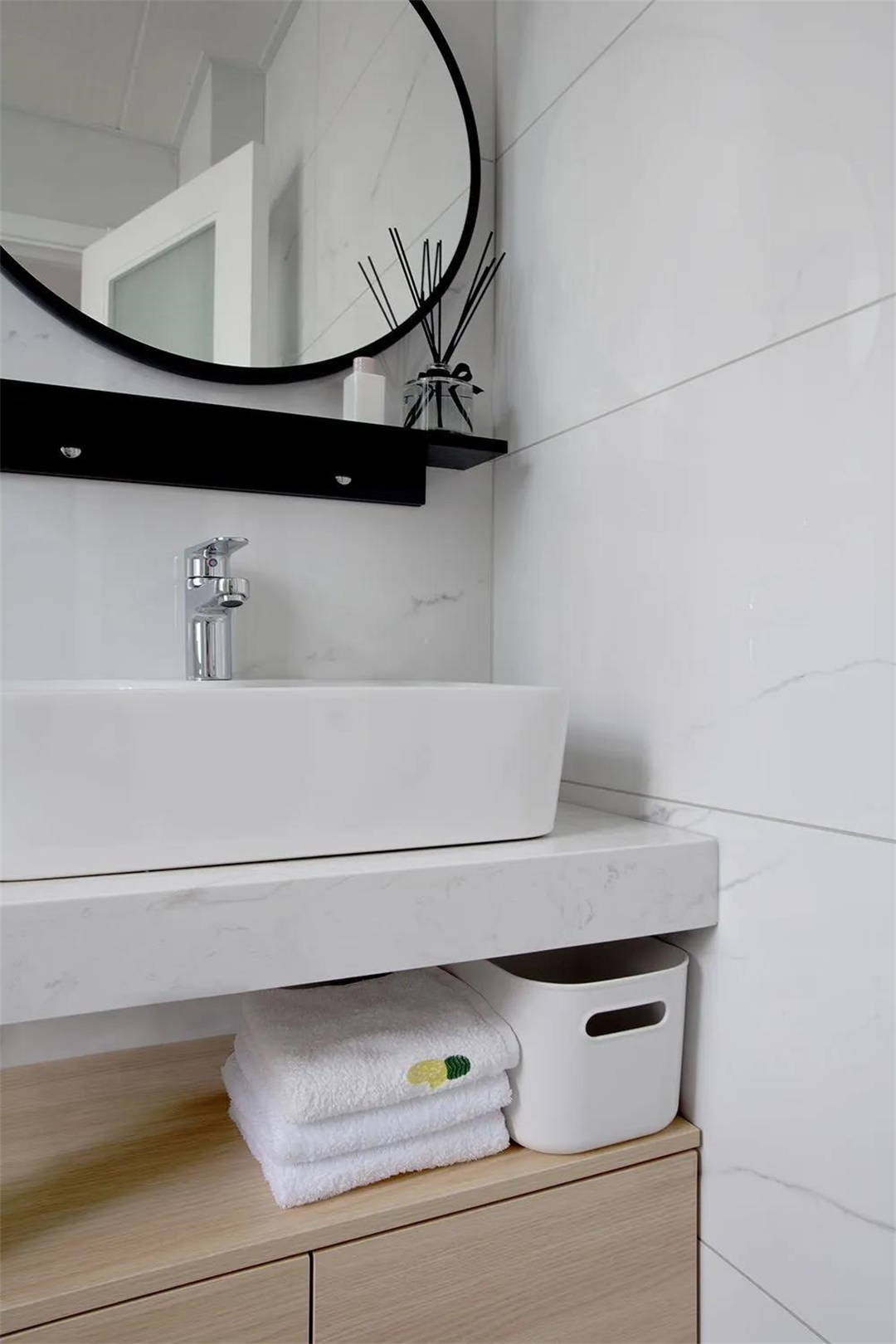 洗手池下設計了收納柜,可以擺放下女主人所有的護膚用品,非常實用。