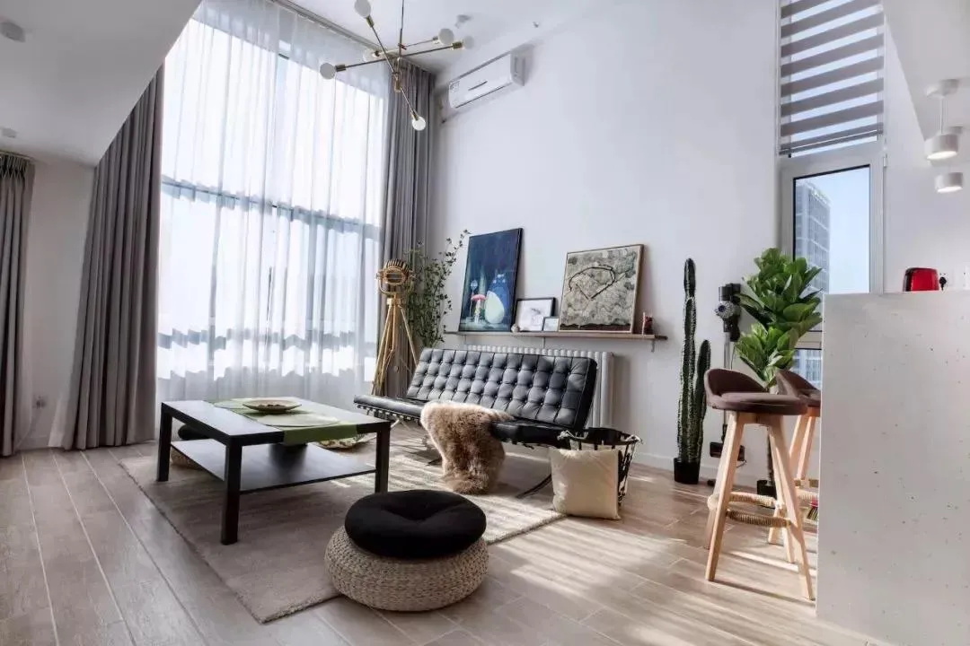 如果有陽臺遮擋,想讓客廳的光線更加明亮充足,那就選擇淺色調或透光性強的薄布材料,有鏤空的布料也是不錯的選擇。